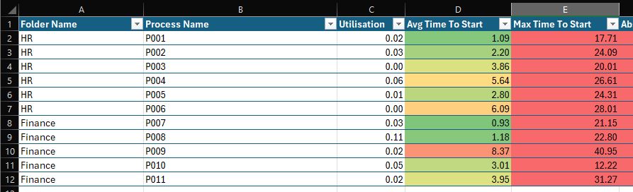 The process extracts queue item and job data from Orchestrator, generating an Excel file with conditional formatting to help you identify problem areas.